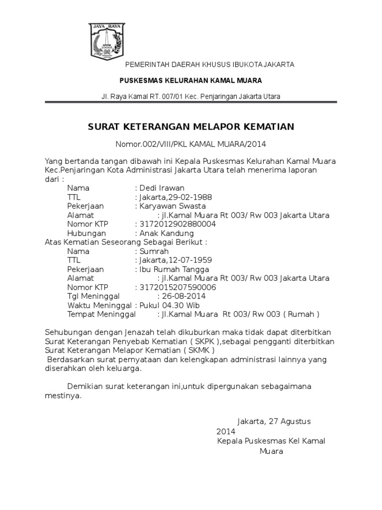 1 3 Akta Kematian from alpukat-dukcapil.jakarta.go.id Contoh surat keterangan kematian rt rw. We did not find results for: Check spelling or type a new query. Maybe you would like to learn more about one of these?